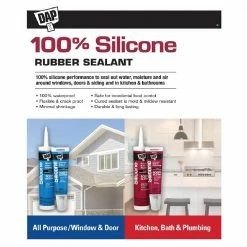 DAP 100% Silicone Rubber Kitchen & Bath Sealant – White, 2.8 oz. – 7079800680 – Caulk & Sealants