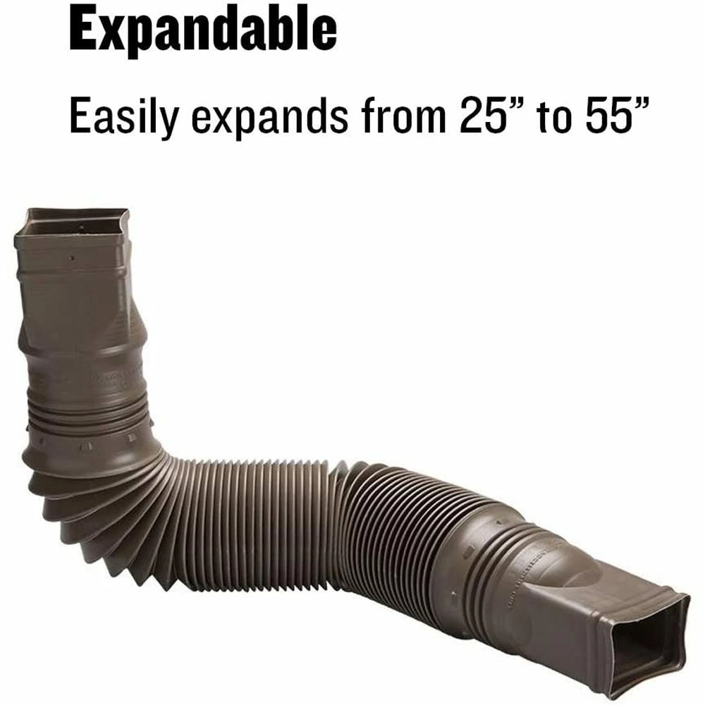 The Amerimax Home Products Flex-A-Spout Downspout Extension has a rigid, corrugated design for versatility. Featuring durable vinyl construction, this extension can be buried, bent or connected to additional sections. Use this downspout extension to divert water away from the foundation or connect to drainage pipe and catch basin to control drainage. The flexible design easily bends and holds its shape and can be extended from 25 in. to 55 in.