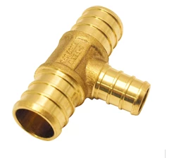 The ApolloPEX 3/4 in. x 3/4 in. x 1/2 in. Brass PEX Barb Reducing Tee is simple to install. ApolloPEX barb fittings are a key component of the most economical potable water piping systems. Also capable of integration into hydronic heating systems, ApolloPEX tees can be secured into place using copper crimps, stainless steel pinch clamps or stainless steel crimp sleeves (all sold separately). The ApolloPEX system is a comprehensive piping system comprised of brass fittings, poly alloy fittings, manifolds, valves, fasteners, tools and tubing designed for implementation in water delivery systems, simple or complex.