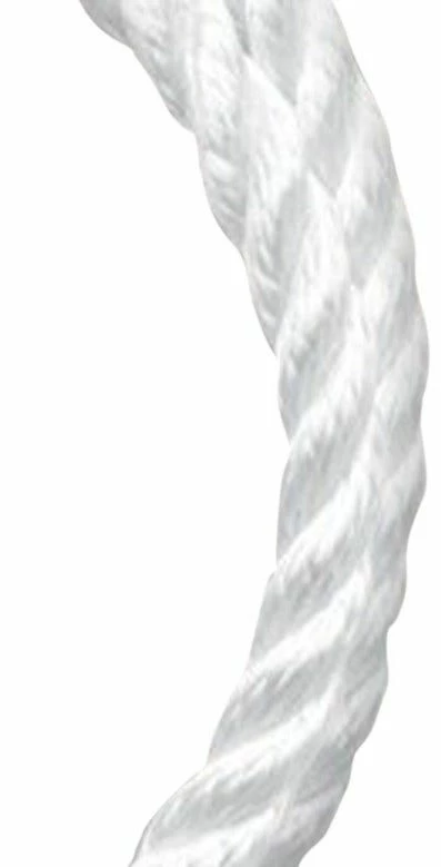 Twisted nylon rope white use for lift and winch lines, boat rigging and dock lines.