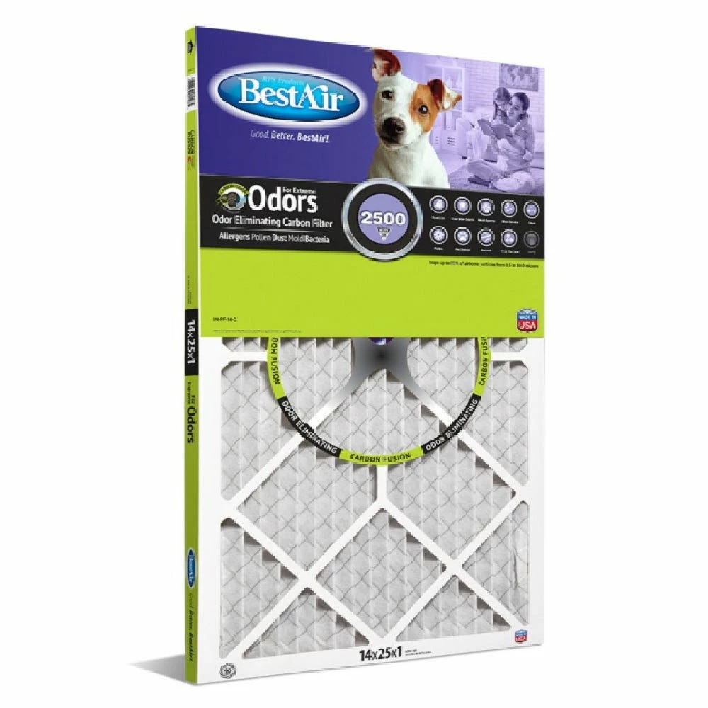- A carbon air filter that serves as a universal replacement for any 1″ furnace filter size 14″ x 25″