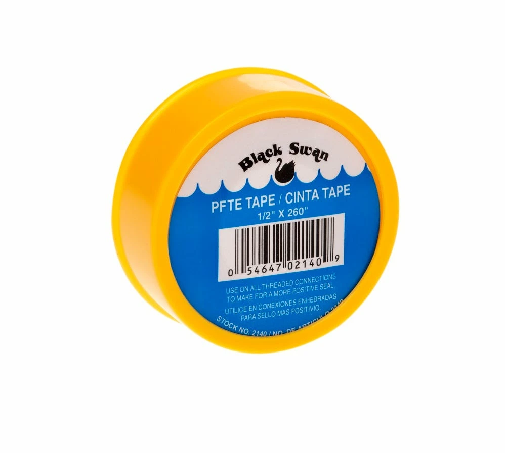 Has a density of 1.2 g/cm3. This tape is specifically formulated to be used with gas lines. Black Swan PTFE Tape is a clean, self-lubricating tape, which is used to make threaded connections. It offers a positive pressure seal to 10,000 lbs. PSI from a temperature range from -450° F to +500° F. Thickness is .0035 ± .0005. Black Swan PTFE Tape is non-toxic and non-flammable. Meets Federal Specification MIL-T-27730A