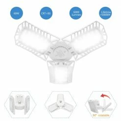 Bright Living LED Garage Lights- 6000 Lumen 5000K Daylight 60W, Three Leaf Ceiling Light White