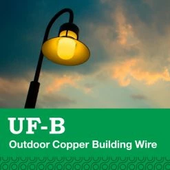- UF-B outdoor direct burial wire is moisture and light resistant