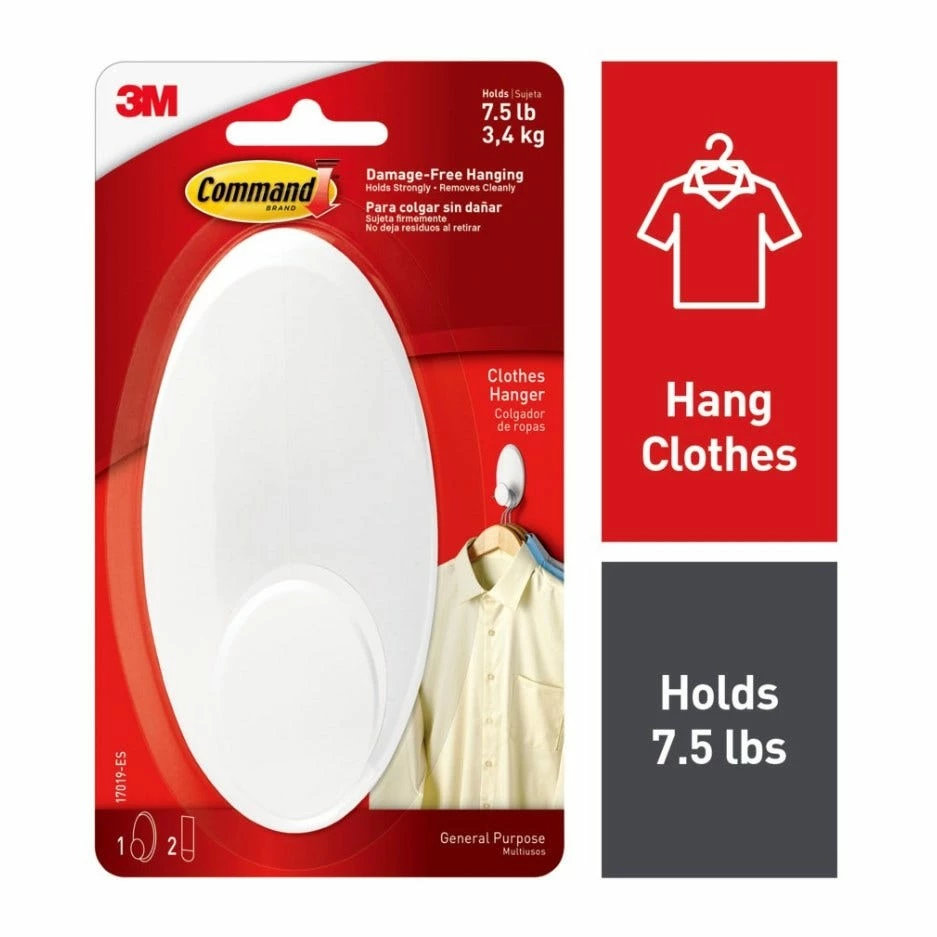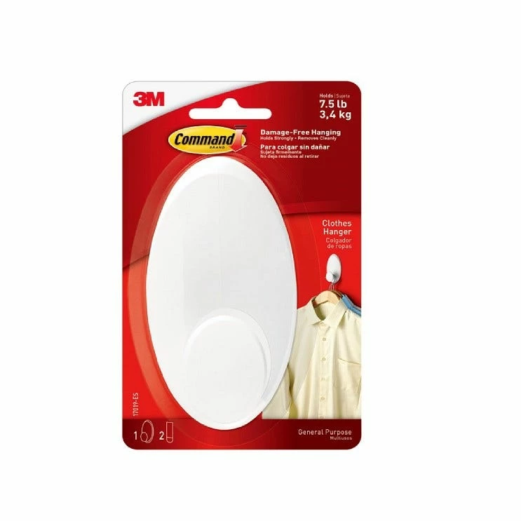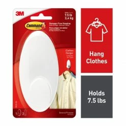 The Command™ Clothes Hanger is sized for up to 3 plastic hangers or 7 metal hangers and up to 7.5 pounds, so it can handle even your heavy coats! Put Command™ Clothes Hangers in the laundry room, bedroom and closet for extra storage. Forget about nails, screws and tacks, Command™ Products are fast and easy to hang! Use the revolutionary Command™ Adhesive, to hold strongly on a variety of surfaces, including paint, wood, tile and more. Removes cleanly no holes, marks, sticky residue or stains. Rehanging items is as easy as applying a Command™ Refill Strip, so you can take down, move and reuse items again and again!