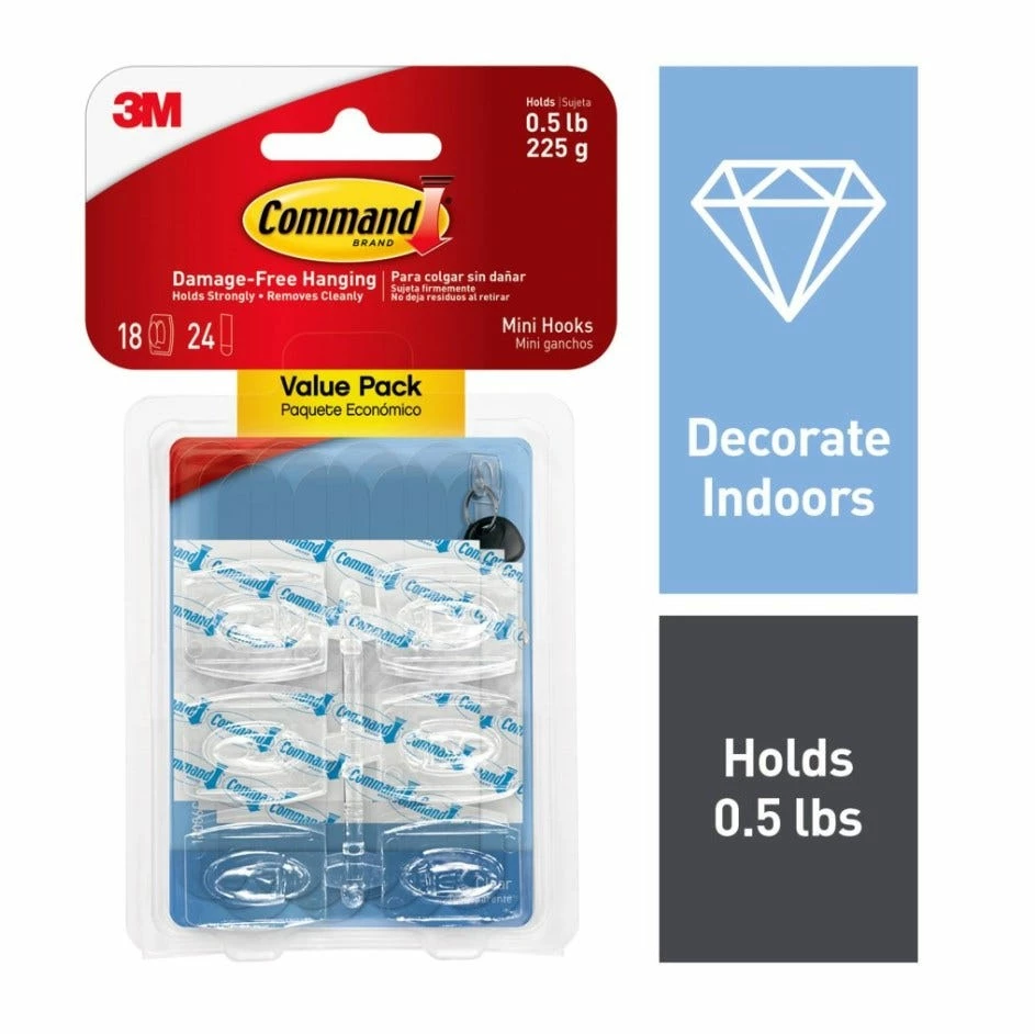 Forget about nails, screws and tacks, Command™ Clear Hooks are fast and easy to hang! The revolutionary Command™ Clear Adhesive Strip adhere firmly to many surfaces, including paint, wood, tile and more. Yet, come off leaving no holes, marks, or sticky residue. Command™ Clear Hooks and Strips blend in seamlessly allowing you to show what matters most, your decor, not how it’s hung up. Rehanging them is as easy as applying a Command™ Clear Refill Strip, so you can take down, move and reuse them again and again!