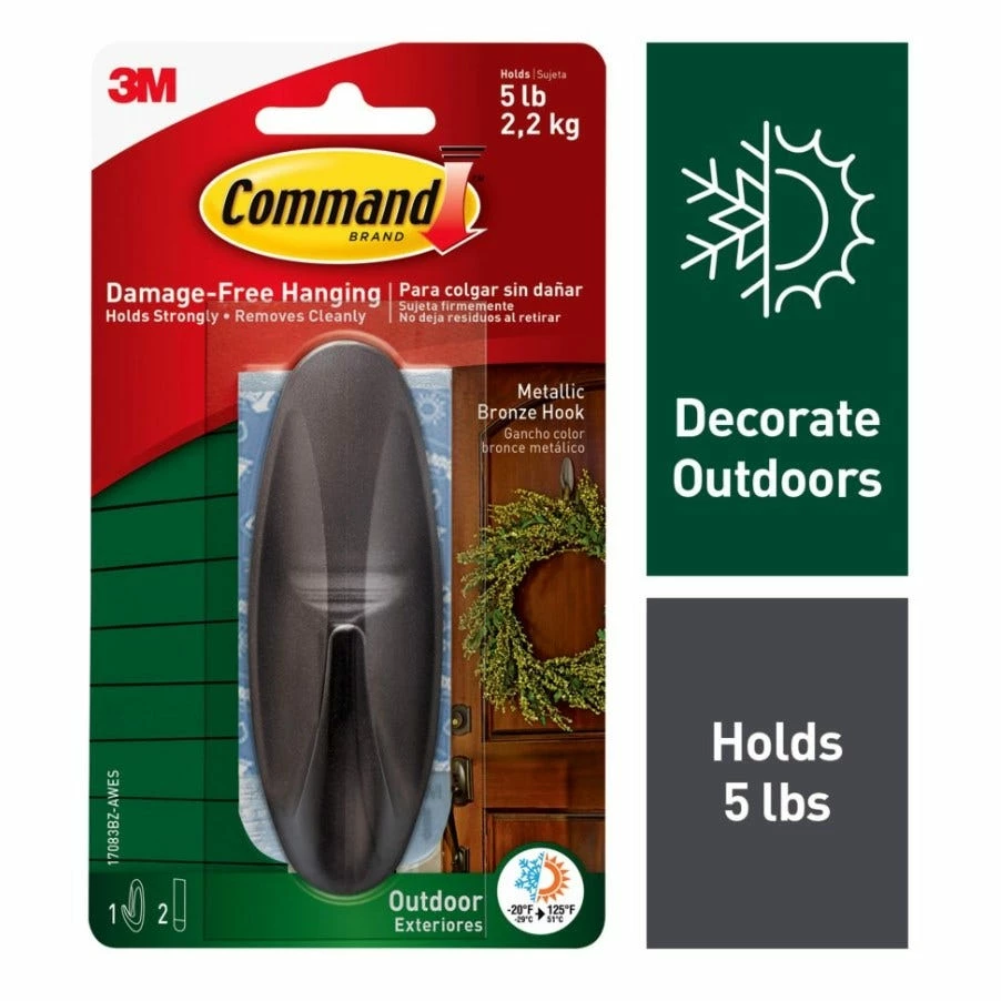 - INCLUDES – 1 hook and 2 large indoor strips; 1 hook holds 5 lbs