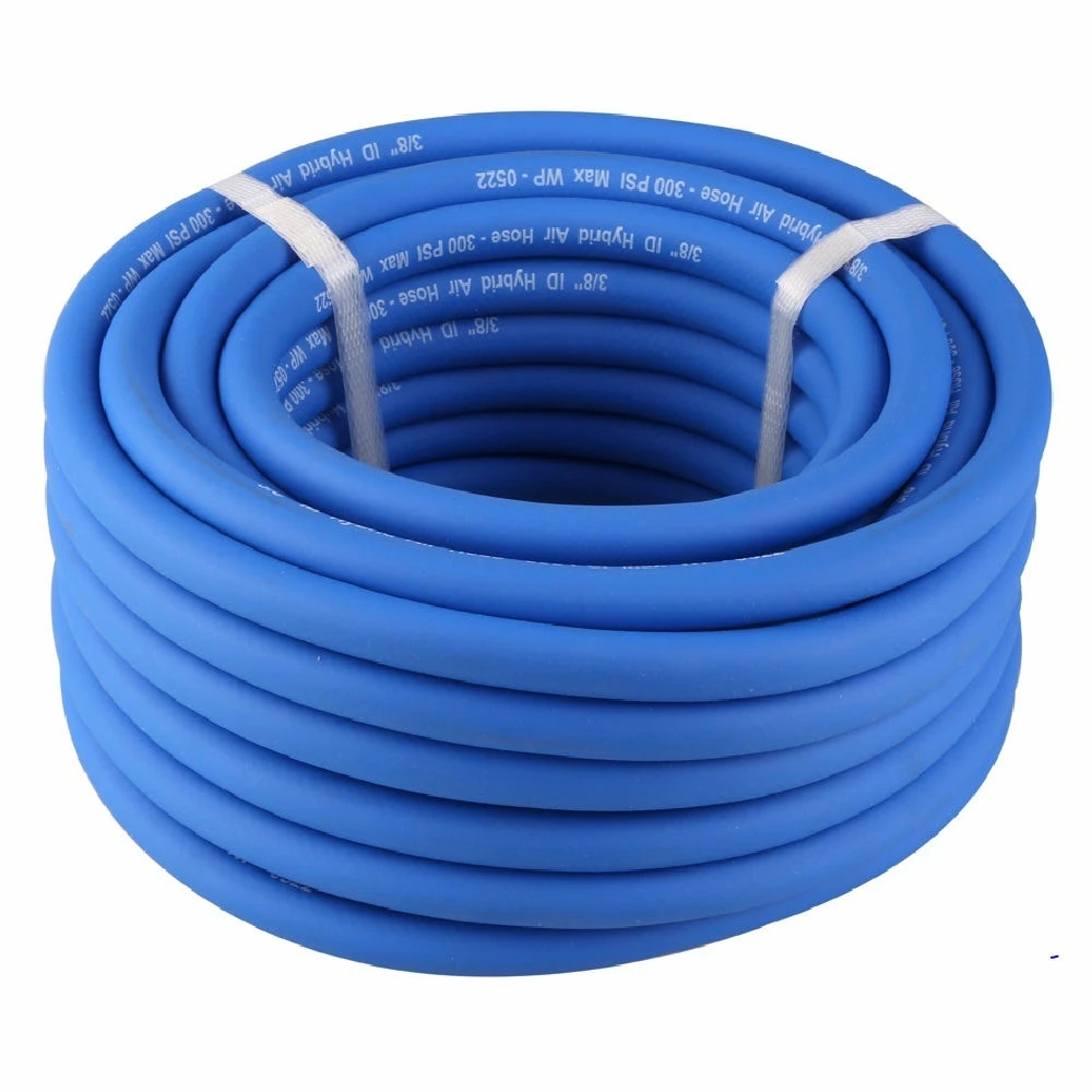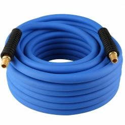 This Hybrid Flex Air Hose 3/8″ x 50′ is engineered with hybrid polymer, combining PVC & rubber material for improved flexibility in extreme temperatures. Its crushproof heavy-duty brass fittings and reinforced bend restrictor help keep this hose kink-resistant. This hose is oil & abrasion resistant, lightweight & durable, which makes it ideal for home use.