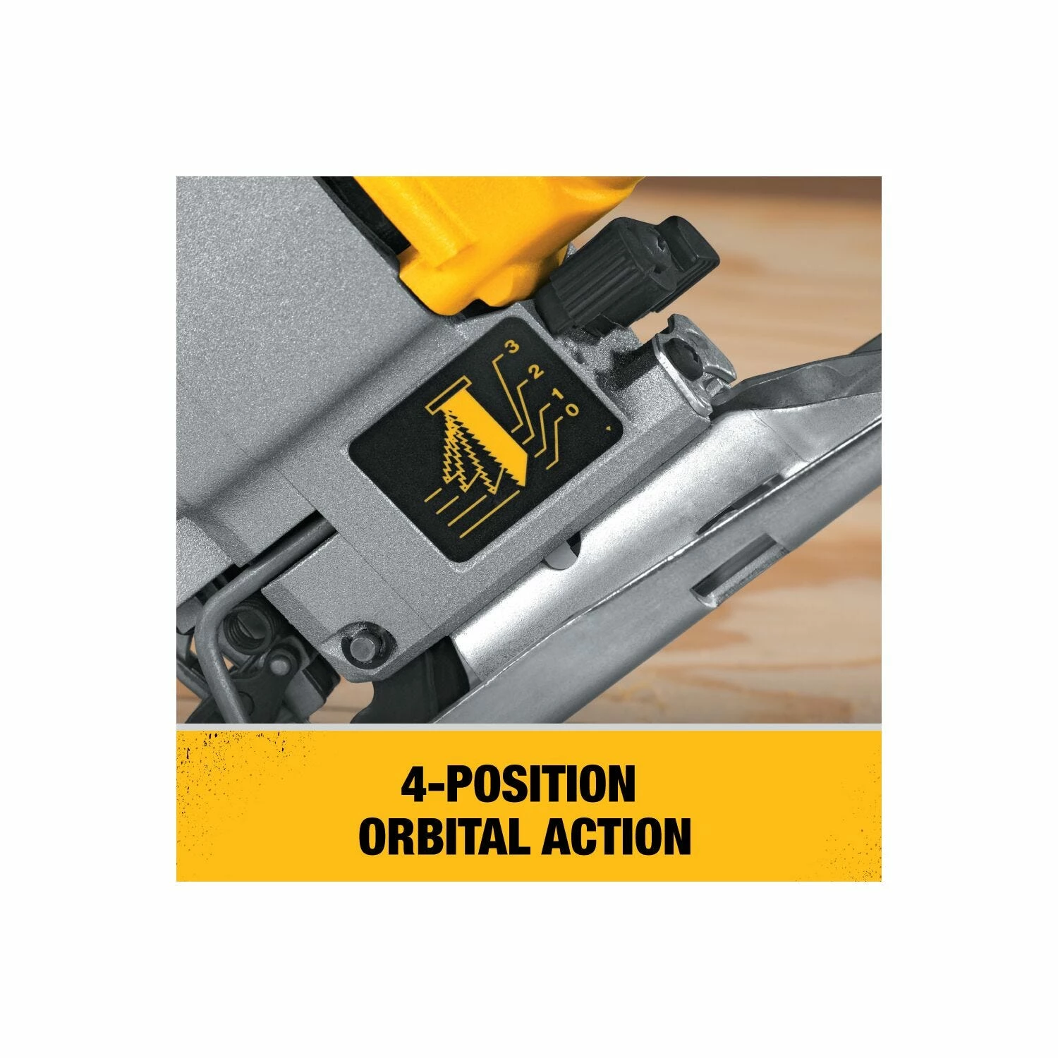 - 4-position orbital action allows for faster, more aggressive cuts in a variety of materials