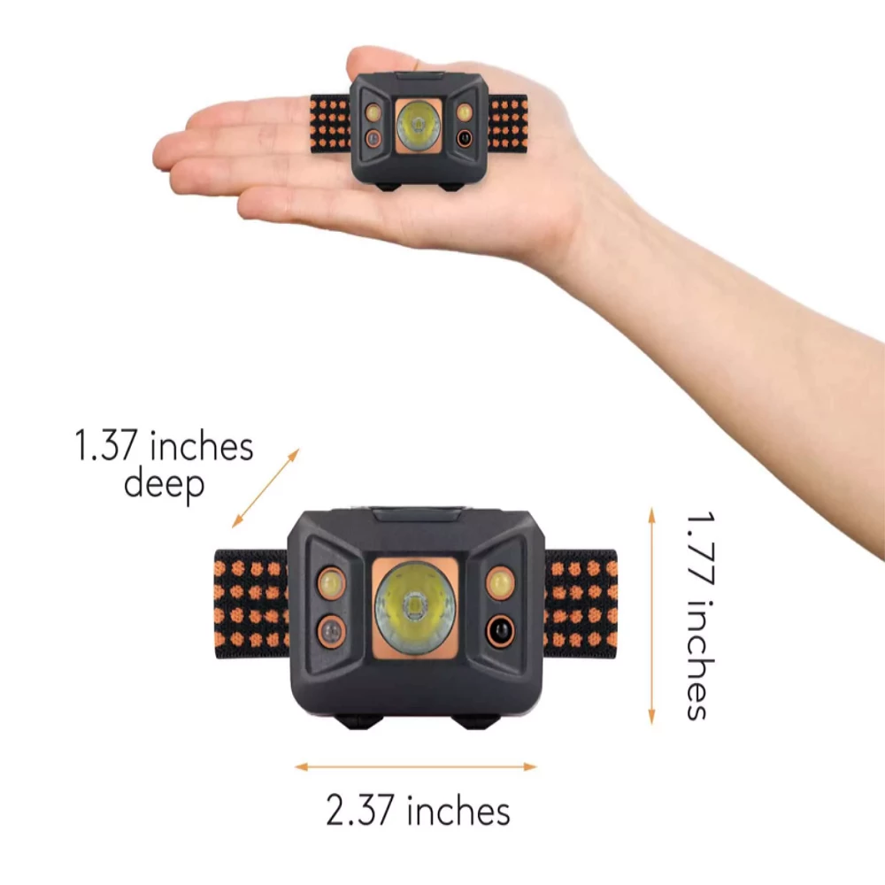 - Headlamp with Motion Activated ON/OFF. Simply move your hand in front of the headlamp to turn it on and off.
