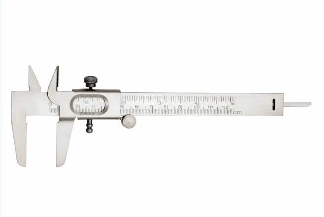 This fractional scale vernier caliper is graduated in 16 in. and millimeters. (1/10 mm) easy to glide roller with friction stop. This economical steel vernier caliper has a 5-in. Capacity with 3 ways measuring inside, outside and depth.