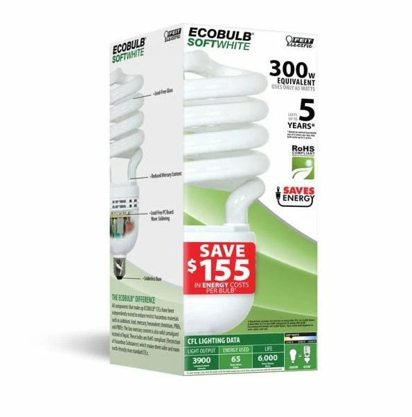 - This indoor/outdoor general household lighting CFL light bulb from Feit Electric puts out a substantial 3900 lumens of soft white (2700K) light to beautifully illuminate interior and exterior settings