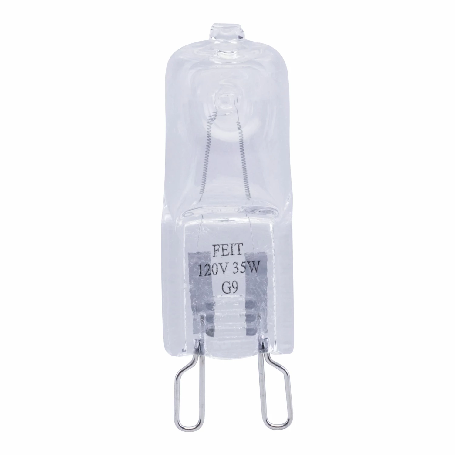 - The Feit Electric 35-Watt G9 Halogen Light Bulb provides a warm white light
