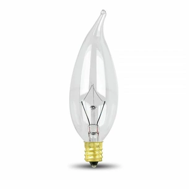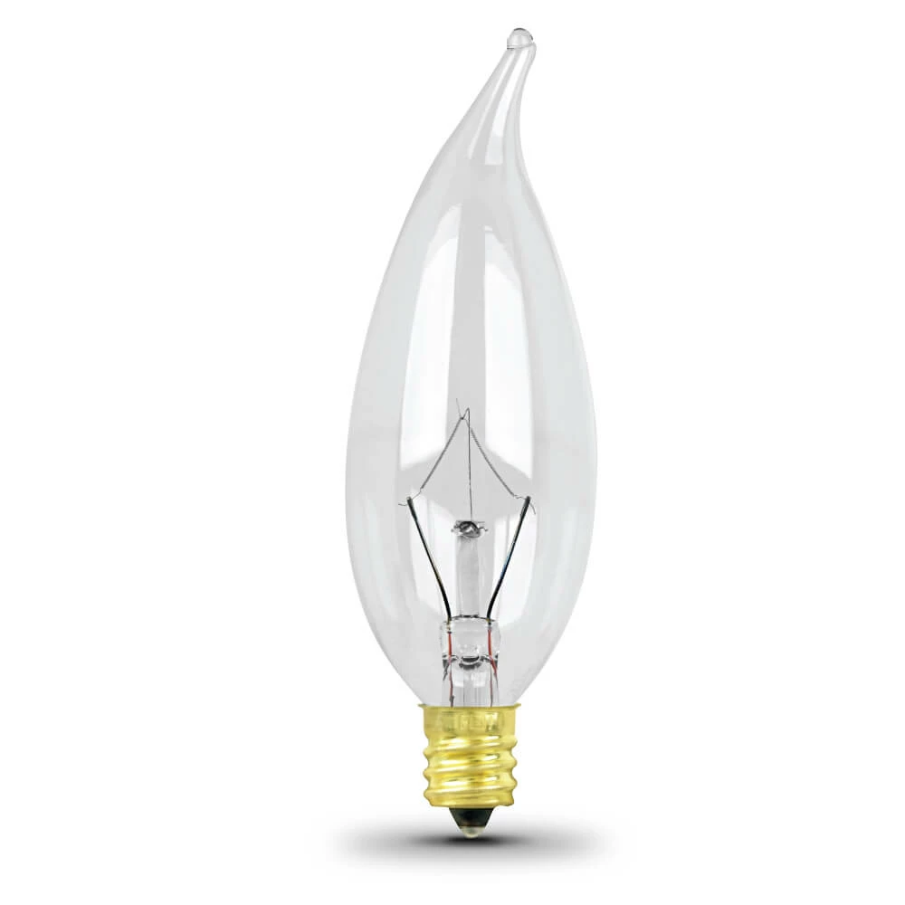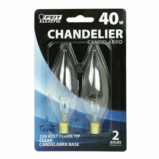 - Add a decorative touch to your home or business’s sconces and chandeliers with the Feit Electric Clear 40-Watt Decorative Flame Tip Candelabra Light Bulb (2 Pack) These bulbs feature a flame shape making them ideal for fixtures where the bulb is visible