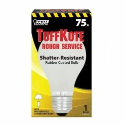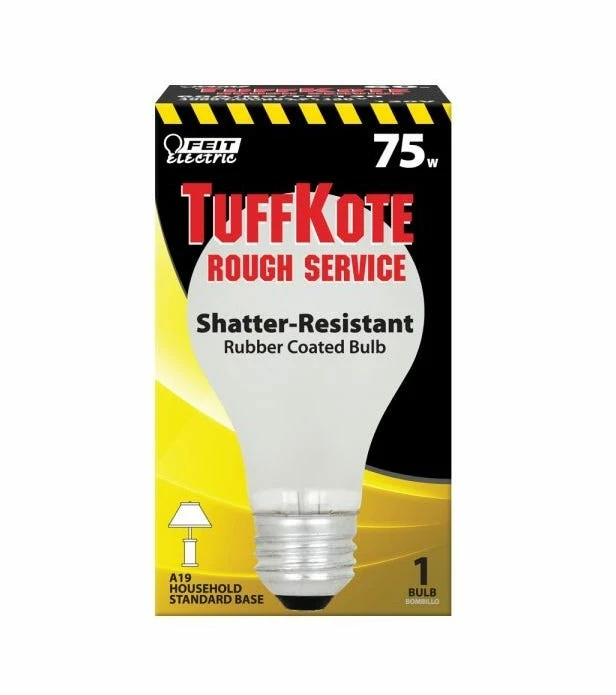 - The Feit Electric 75 Watt soft white TuffKote Rough Service shatter-resistant A19 incandescent bulb features Teflon coated glass to reduce breakage and prevent shattering