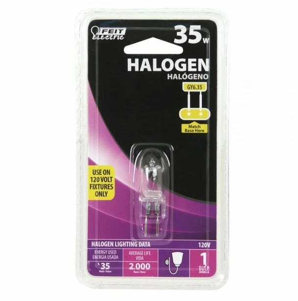 - The Feit Electric 35-Watt T4 Clear Quartz Halogen Light Bulb casts a bright, white glow and can shine up to 2,000-hours