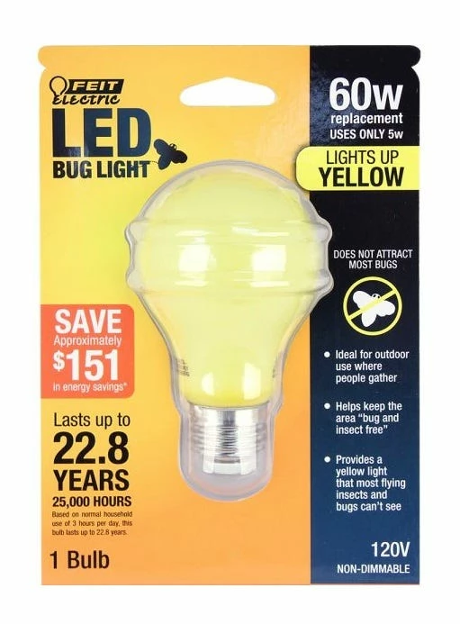 - Shoo away annoying bugs and insects with advanced LED technology, the Feit Electric A19/BUG/LEDÂ 60W LED Bug Light