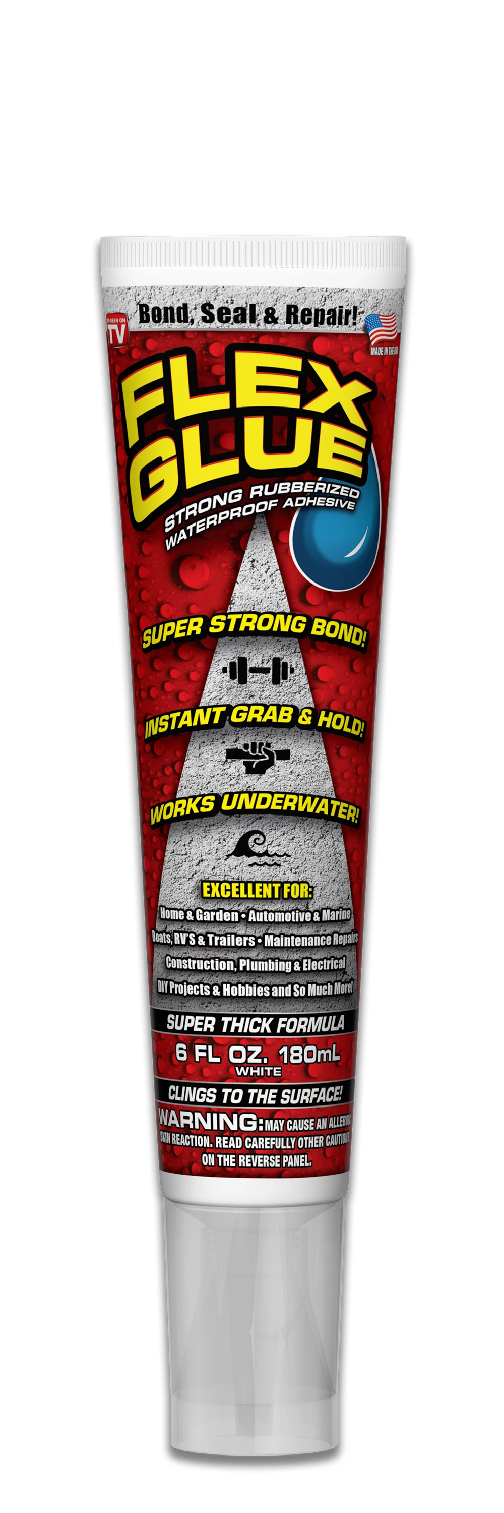 Flex Glue is a powerful Adhesive that can bond, seal and repair virtually everything. It is a strong rubberized waterproof adhesive with insant bond grab tha works like a magnet. It is mildew and UV resistant, It can be applied overhead or under water and it can be painted