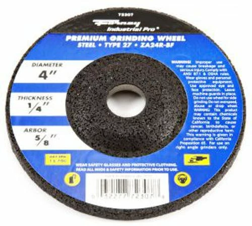 Industrial Pro® 4″ x 1/4″ x 5/8″ Type 27 (metal/steel) premium long life grinding wheel (ZA24R-BF). Max 15,000 RPM. Use only on right angle grinders.