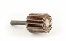1″ Diameter X 1″ 80 Grit Flap Wheel (30,000 RPM). Durable, high-grade aluminum oxide coating for aggressive cleaning on most wood or metal surfaces.