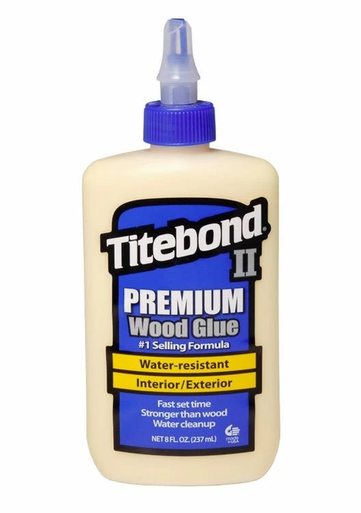 Titebond II premium wood glue is the only leading brand, one-part wood glue that passes the ANSI type II water-resistance specification. It is ideal for exterior woodworking projects, including outdoor furniture, birdhouses, mailboxes, planters and picnic tables. Titebond II premium provides a strong initial tack, fast speed of set, superior strength and excellent sandability. It is FDA approved for indirect food contact (cutting boards) and is ideal for radio frequency (R-F) gluing systems.