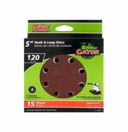 - 15 pack, 8hole with a 120 grit and measures 5 inches