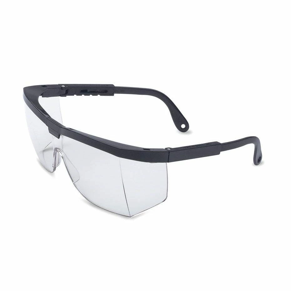 These Honeywell A200 Series Economy Safety Glasses are a good choice for straightforward, dependable protection. A convenient and versatile piece of equipment for busy workplaces, the safety glasses boast conventional protective eyewear styling. The clear lens will not hamper your vision when working indoors, and the durable black frame offers integrated side protection to keep eyes safe from flying debris.Â