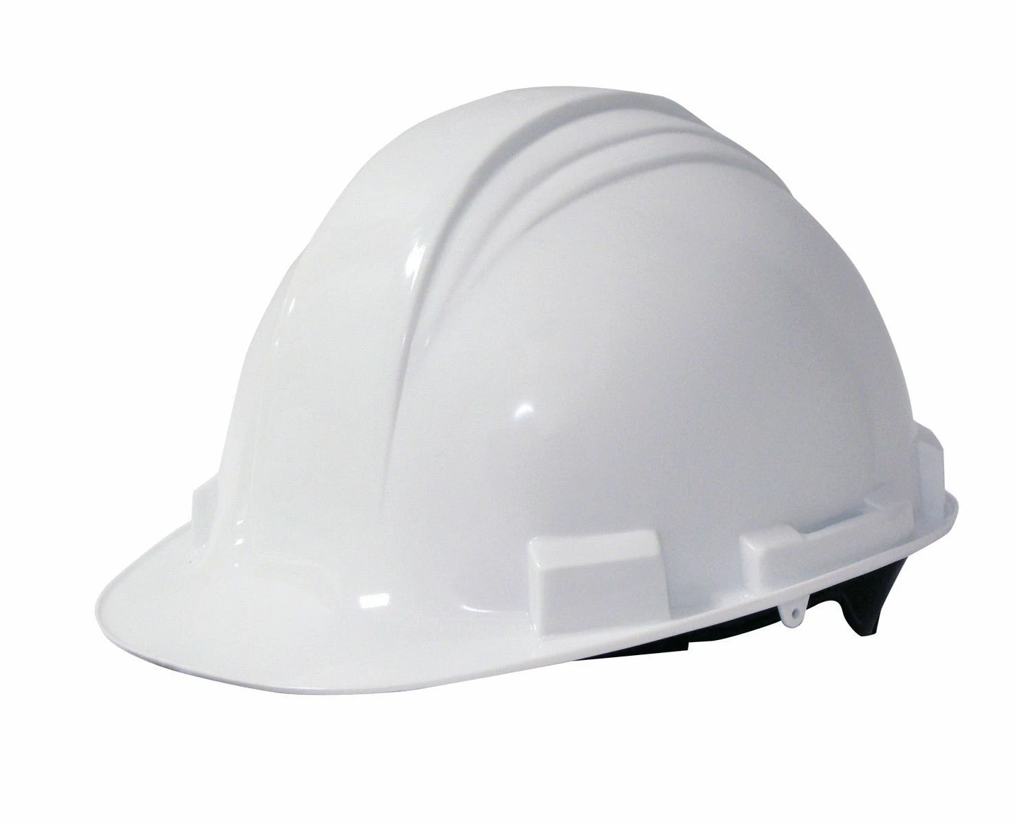 - Downward-facing strap helps to hold the hard hat securely in place.