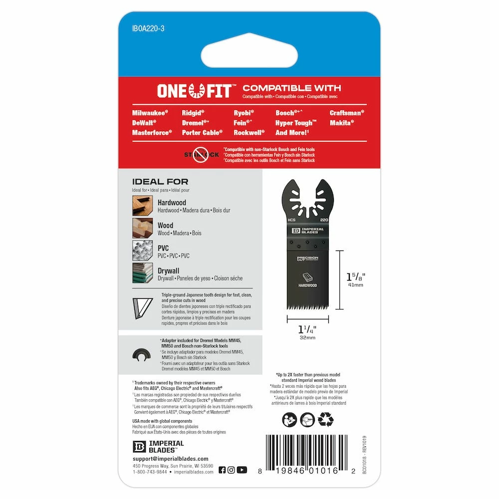 Imperial Blades One Fit 1-1/4″ Japanese Tooth Hardwood Blade, 3 Piece – 98443020