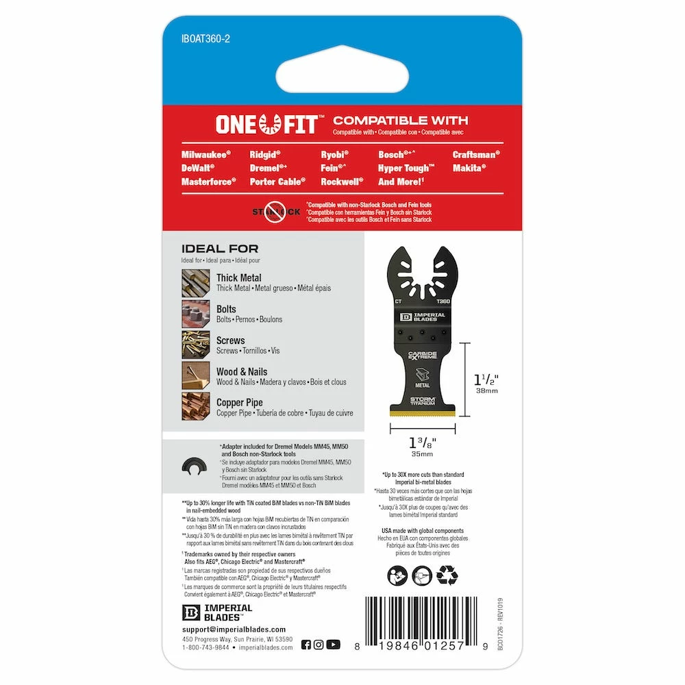 Imperial Blades One Fit 1-3/8″ Carbide Extreme Storm Titanium Metal Blade, 2 Piece – 98443002