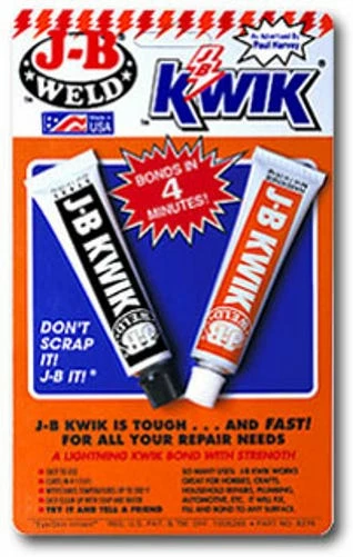 J-B KWIK is the perfect partner for the J-B WELD you keep in your tool box. Lots of times, you need to fix something fast and don’t have the time or patience to hold it for half an hour while the hardener sets up, or wait for it to cure overnight. That’s why there’s J-B KWIK!