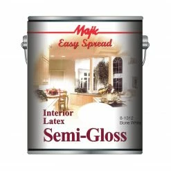 This is an economical quality vinyl-acrylic formulation that offers dependable performance and exceptional value as modern latex enamel for primed or previously painted drywall, plaster, wood or metal. Dirt and grease are easily removed from the finish by simply wiping with a rag and soapy water. Majic Easy Spread Interior Latex Semi-Gloss Enamel dries to a tough semi-gloss finish coat.