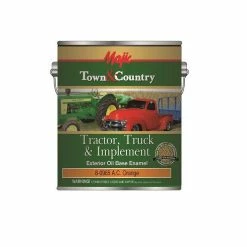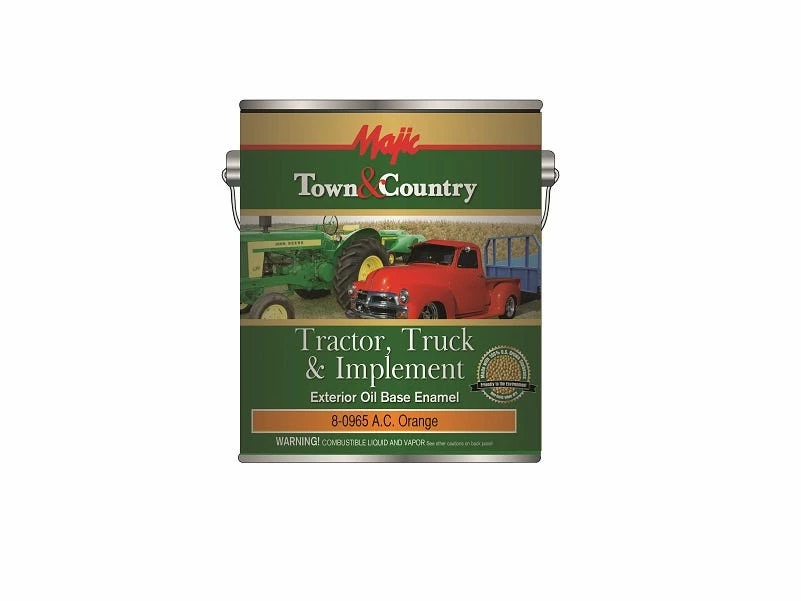 Majic Town & Country Tractor, Truck & Implement Enamel is a durable heavy-duty alkyd enamel specially formulated for excellent adhesion, and resistance to weathering and corrosion. It may be applied by brush or spray, and dries to a high gloss finish. For use on iron, steel, aluminum and properly primed galvanized metal.
