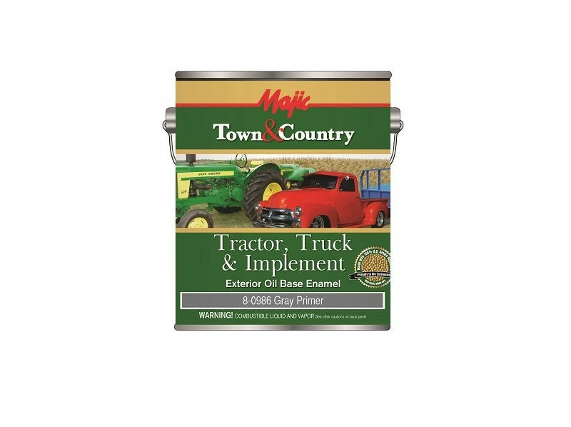 Majic Tractor, Truck & Implement Oil Base Primer is durable, heavy duty, rust-inhibitive, alkyd primer specifically formulated for excellent adhesion, and resistance to weathering and corrosion. It may be applied by brush, roll or spray to iron, steel and aluminum surfaces.