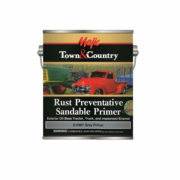 Majic Town & Country Rust Preventative Sandable Primer for Exterior Oil Base Tractor, Truck & Implement Enamel is a durable heavy-duty alkyd primer specially formulated for excellent adhesion and resistance to weathering and corrosion. Use it on iron steel, aluminum and properly primed galvanized metal.