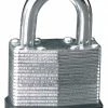The Master Lock No. 22T Laminated Padlock features a 1-1/2in (38mm) wide laminated steel body for strength and reliability. The 1/4in (6mm) diameter shackle is 5/8in (16mm) long and made of steel, offering strong resistance to cutting. The warded single locking lever mechanism minimizes jamming from dirt and grime. The Limited Lifetime Warranty provides peace of mind from a brand you can trust.