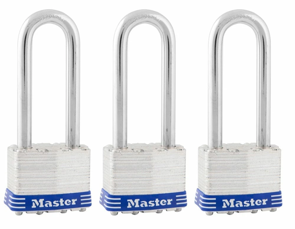 The Master Lock No. 1TRILJ Laminated Padlocks feature a 1-3/4″ (44mm) wide laminated steel body for maximum strength and reliability. The 5/16″ (8mm) diameter shackle is 2″ (51mm) long and made of hardened steel, offering extra resistance to cutting and sawing. The 4-pin cylinder prevents picking and the dual locking levers provide resistance against prying and hammering. The Limited Lifetime Warranty provides peace of mind from a brand you can trust.