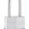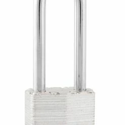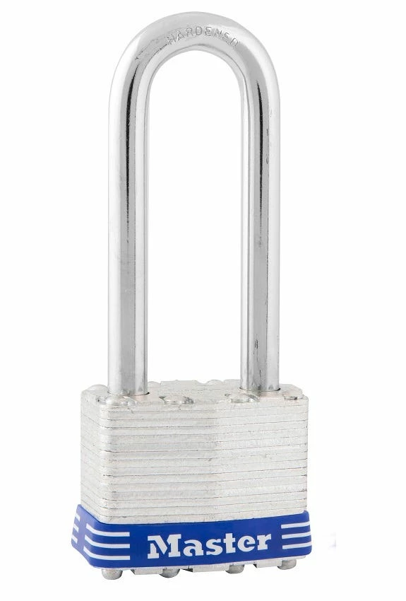 The Master Lock No. 1DLJ Laminated Padlock features a 1-3/4in (44mm) wide laminated steel body for maximum strength and reliability. The 5/16in (8mm) diameter shackle is 2in (51mm) long and made of hardened steel, offering extra resistance to cutting and sawing. The 4-pin cylinder prevents picking and the dual locking levers provide resistance against prying and hammering. The Limited Lifetime Warranty provides peace of mind from a brand you can trust.