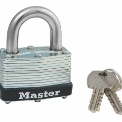 The Master Lock No. 500D Laminated Padlock features a 1-3/4in (44mm) wide laminated steel body for strength and reliability. The 9/32in (7mm) diameter shackle is 13/16in (21mm) long and made of steel, offering strong resistance to cutting. The warded single locking lever mechanism minimizes jamming from dirt and grime. The Limited Lifetime Warranty provides peace of mind from a brand you can trust.