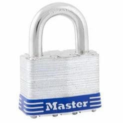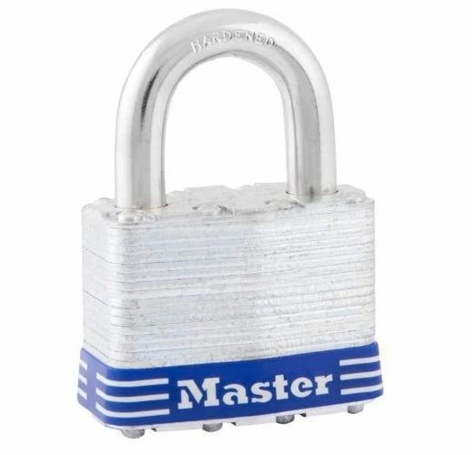 The Master Lock No. 5D Laminated Padlock features a 2in (51mm) wide laminated steel body for maximum strength and reliability. The 3/8in (10mm) diameter shackle is 1in (25mm) long and made of hardened boron alloy, offering maximum resistance to cutting and sawing. The 4-pin cylinder prevents picking and the dual locking levers provide resistance against prying and hammering. The Limited Lifetime Warranty provides peace of mind from a brand you can trust.