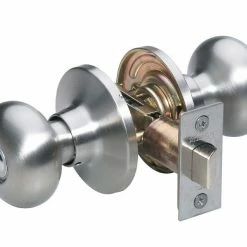 The Master Lock No. BCO0315 features a biscuit style knob with six-way adjustable latch to fit all doors with 2-3/8in or 2-3/4in backset, square, rounded corners, or drive-in. This knob offers ANSI GRADE 3 performance for interior locking applications. The satin nickel finish provides a sleek appearance. The Limited Lifetime Warranty provides peace of mind from a brand you can trust.