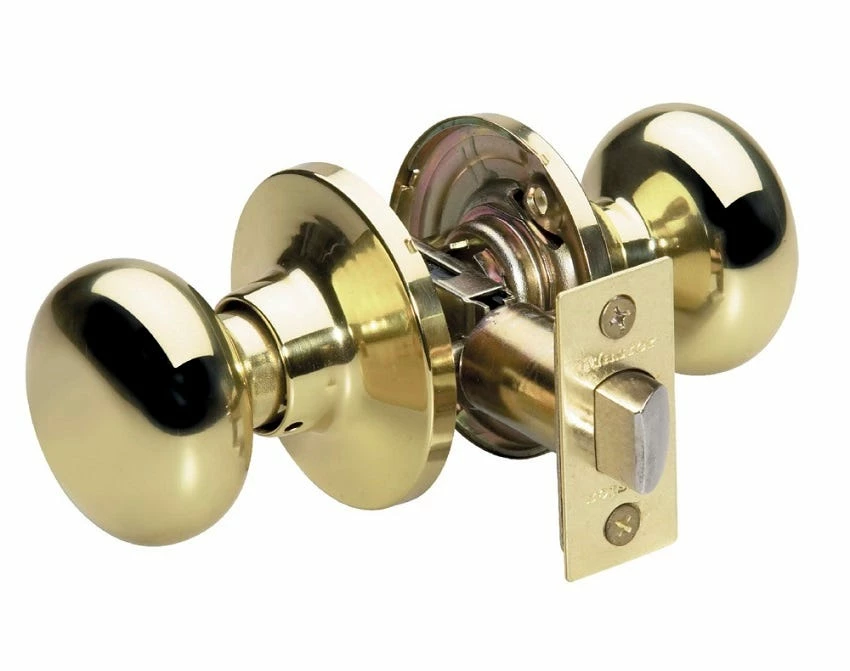 The Master Lock No. BCO0403 features a biscuit style knob with six-way adjustable latch to fit all doors with 2-3/8in or 2-3/4in backset, square, rounded corners, or drive-in. This knob offers ANSI GRADE 3 performance for interior non-locking applications. The polished brass finish provides a sleek appearance. The Limited Lifetime Warranty provides peace of mind from a brand you can trust.