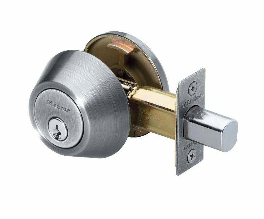 The Master Lock No. DSO0615 features a single cylinder deadbolt, with interior thumb turn. The deadbolt is four way adjustable for 2-3/8in or 2-3/4in backset, square, or rounded corners. The deadbolt offers ANSI GRADE 3 performance for exterior locking applications. The satin nickel finish provides a sleek appearance. The Ten Year Limited Warranty provides peace of mind from a brand you can trust.