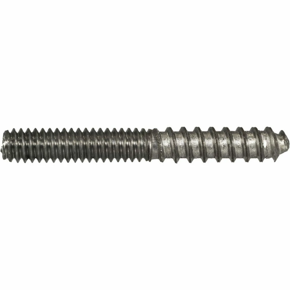 - A hanger bolt is a headless fastener that has machine screw threads on one end and self-tapping threads on the other designed to be driven into wood or another soft substrate. Often used for mounting legs on tables.