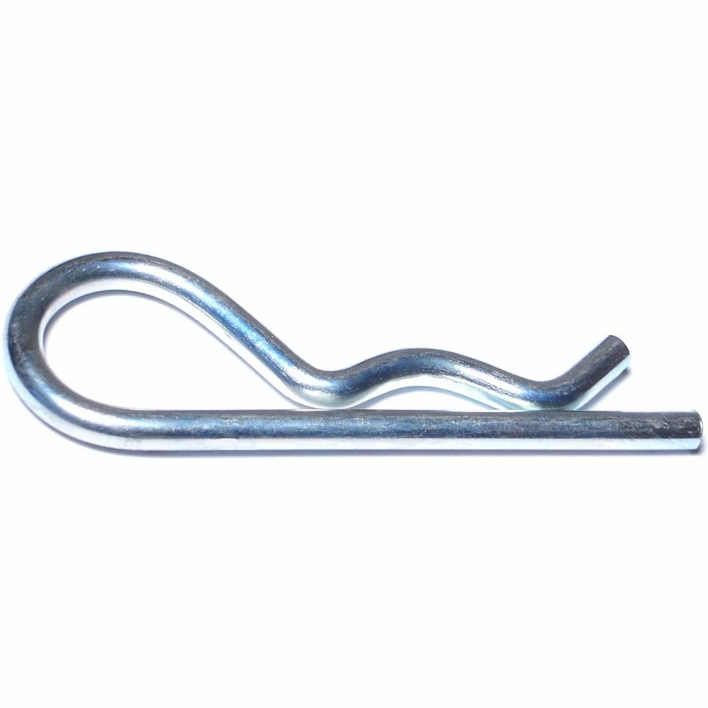 - A hitch pin clip is a fastener made of a springy material, commonly hardened metal wire, in the shape of the letter “R”. They are commonly used to secure the ends of round shafts such as axles and clevis pins.