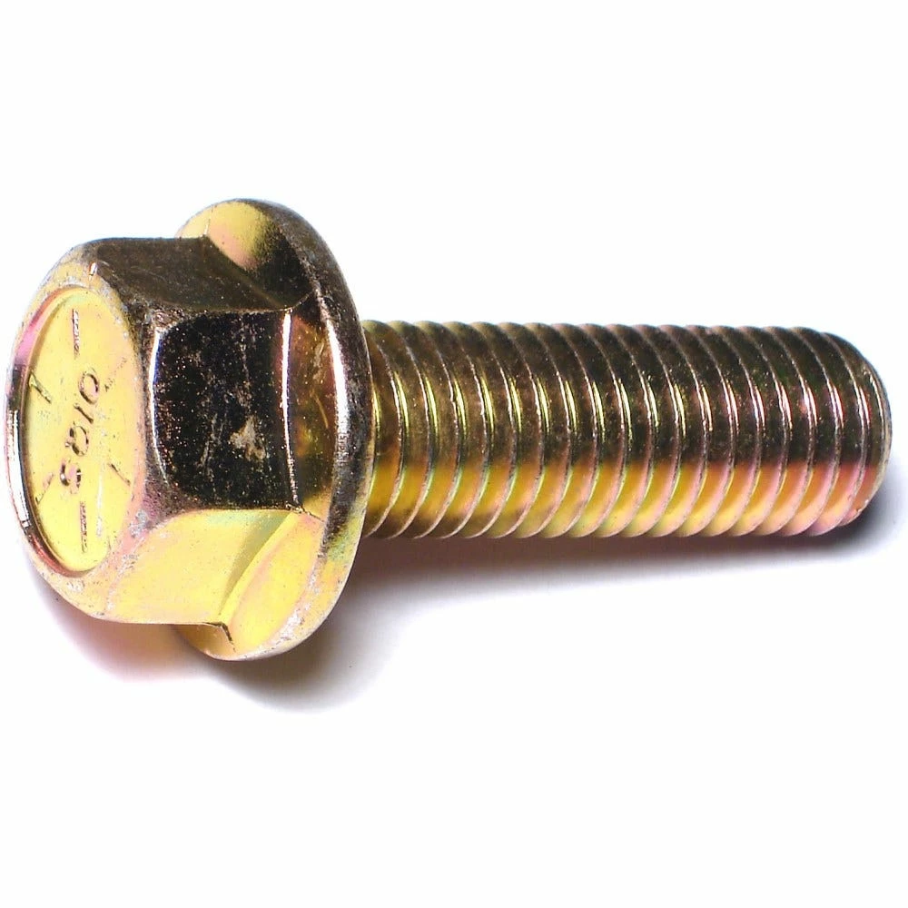 - A flange bolt has a wide flange under the hexagonal head that acts as an integrated, non-spinning washer. This serves to distribute the pressure of the bolt over the part being secured and makes it less likely to loosen.