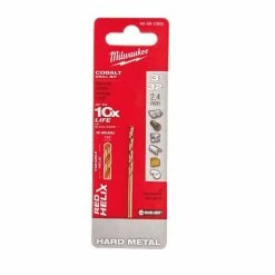 The MILWAUKEE RED HELIX Cobalt 3/32 in. Drill Bit are engineered for extreme durability and longer life in hard metal applications. The Milwaukee Cobalt drill bits are designed with a VARIABLE HELIX that includes an aggressive 35 degree Helix Angle which ends at 15 degree . The 135 degree split point tip delivers a precision start and prevents walking for fast, accurate holes in Hard Metal, PVC and wood. The tapered drill bits feature a new ENHANCED TAPERED WEB that strengthens the bit’s core to increase flute durability. The cobalt twist drill bits are ideal for tough applications, providing up to 15X life vs. Black Oxide Drill Bits.