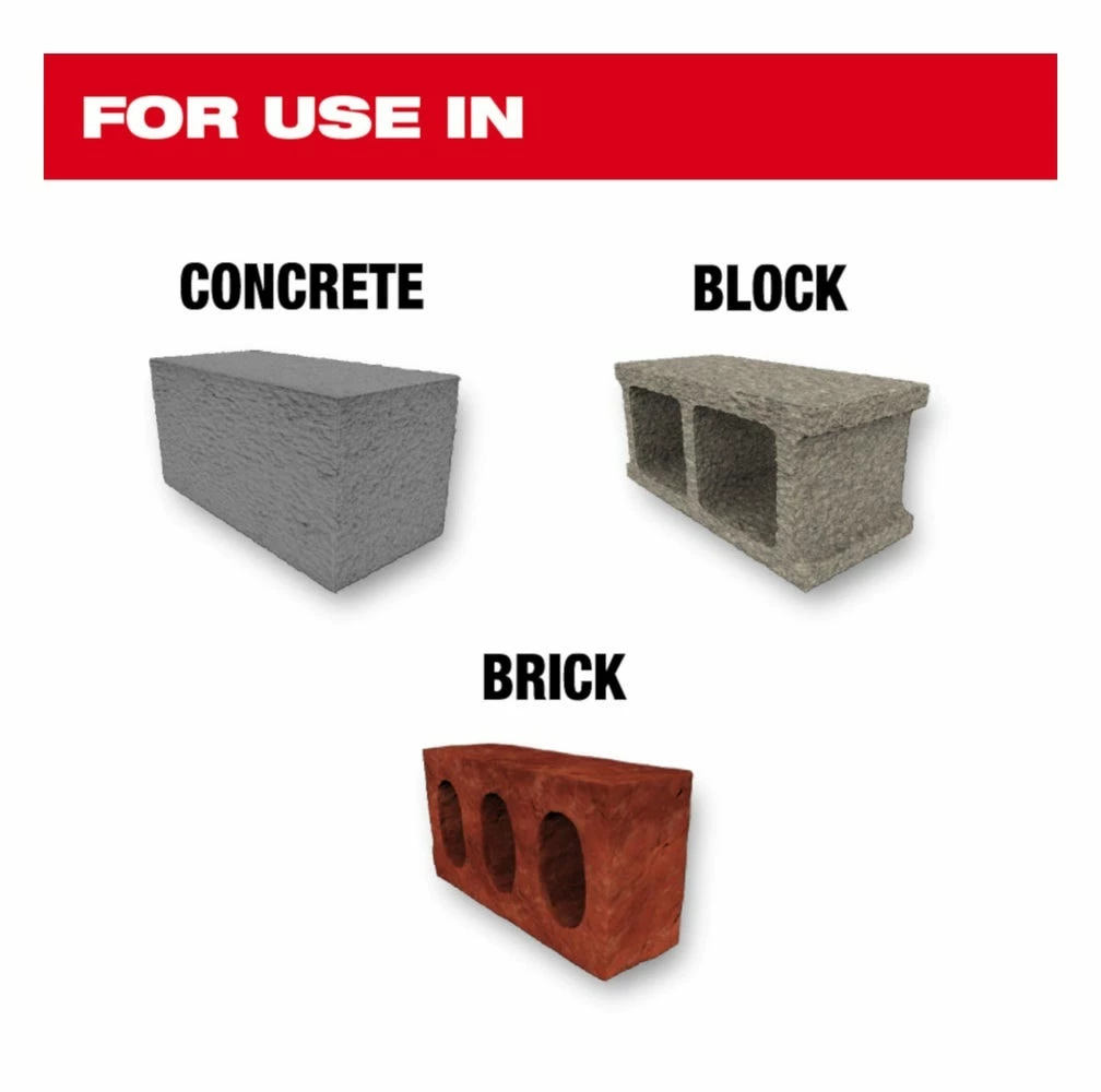 - Sharpened carbide edges for faster starts in concrete, brick, and block