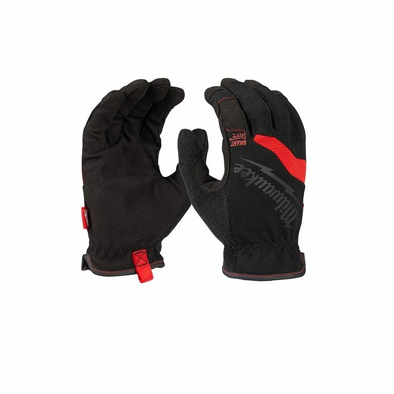 Milwaukee FreeFlex Work Gloves are designed to provide Ultimate Durability and All Day Comfort. Featuring Smartswipe fingertips, knuckles and palms designed to allow the use of touch screens and high dexterity fingertips to provide precision when handling small objects. A reinforced thumb seam provides enhanced durability and the FreeFlex elastic cuff ensures the gloves remain comfortable enough to wear all day.