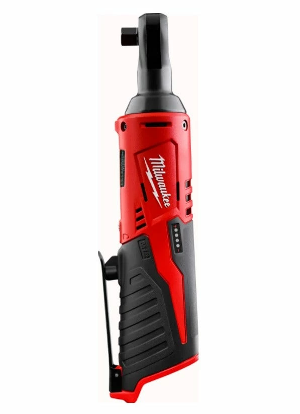The Milwaukee M12 3/8 in. Ratchet delivers best-in-class power, speed, and durability for sub-compact tools. The cordless ratchet wrench is ideal for auto mechanics, maintenance and repair professionals looking for maximum performance and productivity in a subcompact cordless tool. It utilizes a powerful 12-Volt motor to produce up to 35 ft./lbs. of torque and 250 RPM, giving users the power and speed of a pneumatic ratchet without the air hose. The cordless ratchet is powered by the M12 REDLITHIUM Battery Pack (sold separately), delivering more work per charge and more work over pack life than the competitors. The battery pack provides users with best-in-class performance in extreme job site conditions. The power ratchet is compact at just 10-3/4 in. L and 1.9 lbs. and is tool-belt portable. The cordless tool features a 3/4 in. low-profile head design allowing users to work in the tight spaces and engine bays. The variable-speed metal trigger and reinforced steel housing provide users with maximum control and durability with any application.